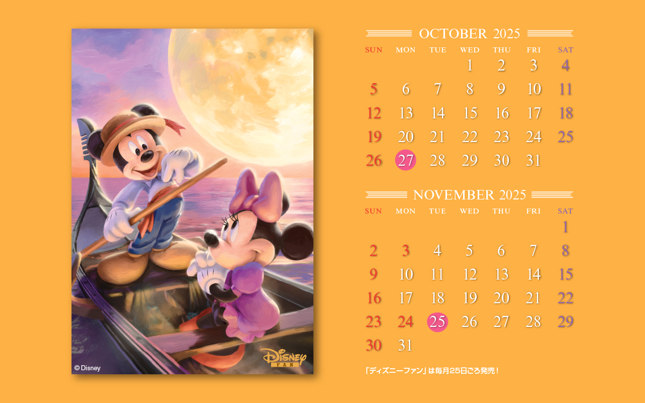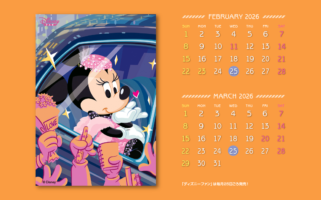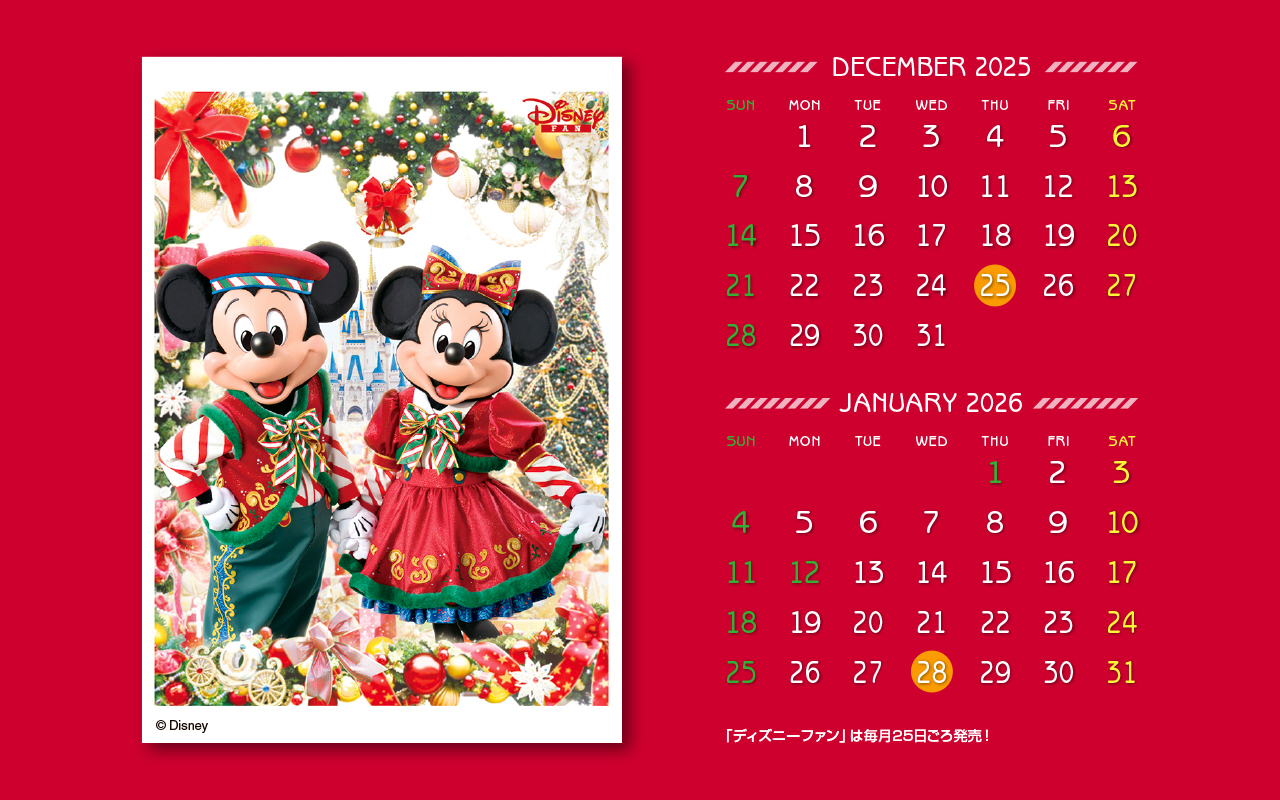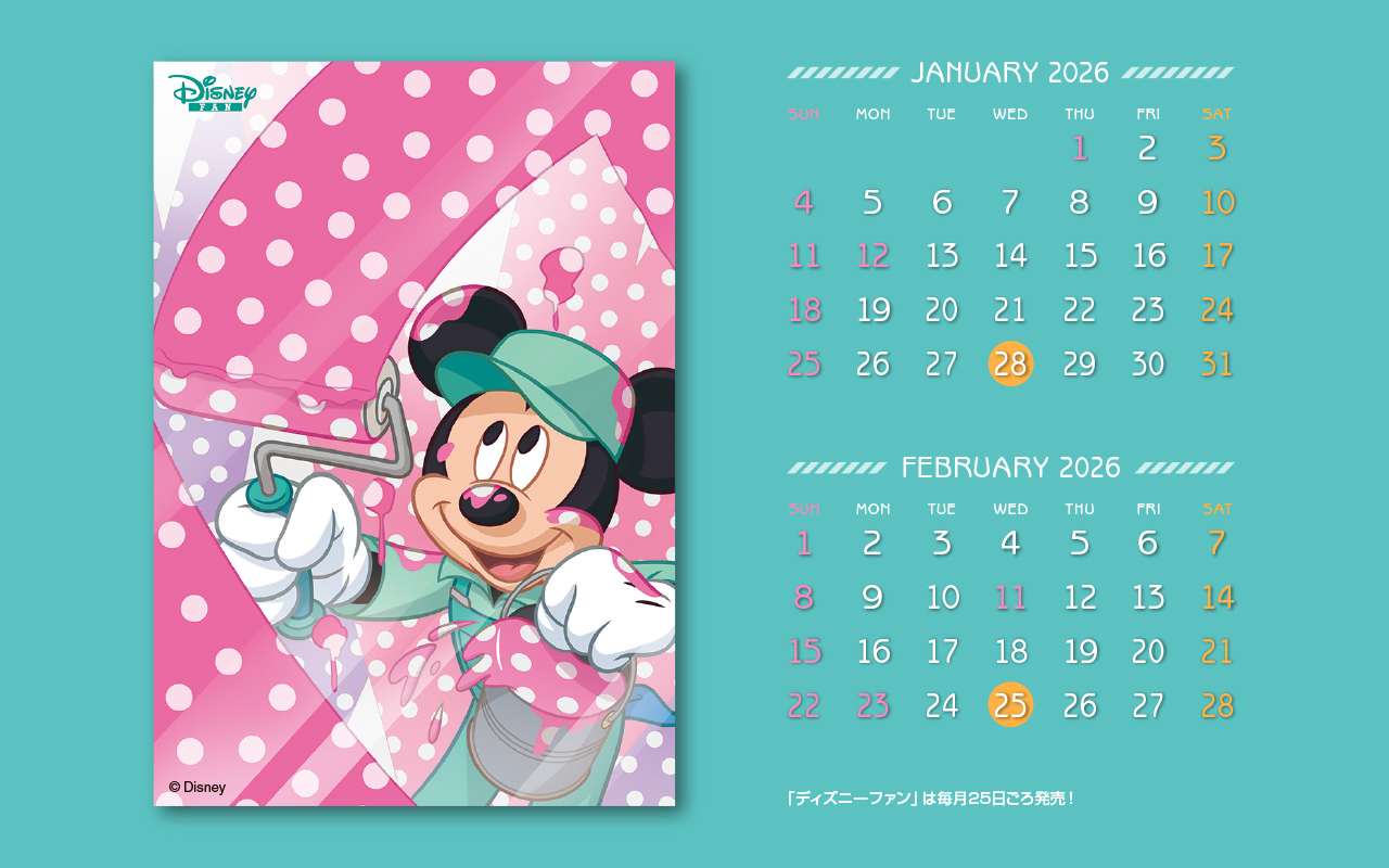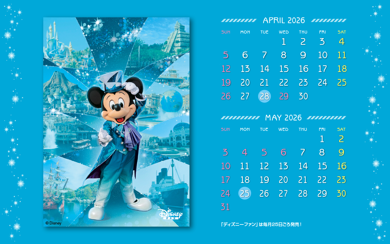 ディズニーファン公式サイトでは、毎月楽しい壁紙を無料で全員にプレゼント!毎月チェックして壁紙をゲットしてください。