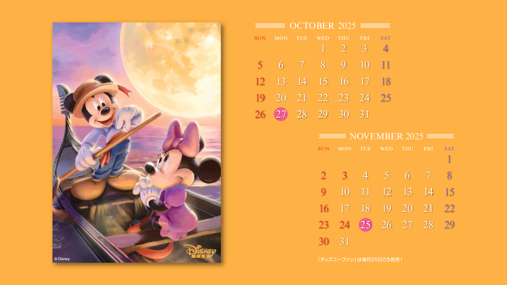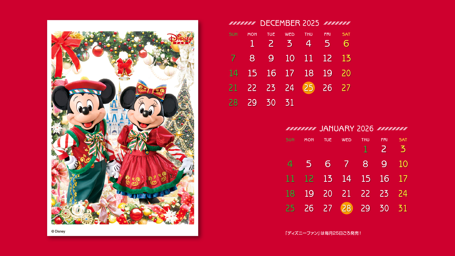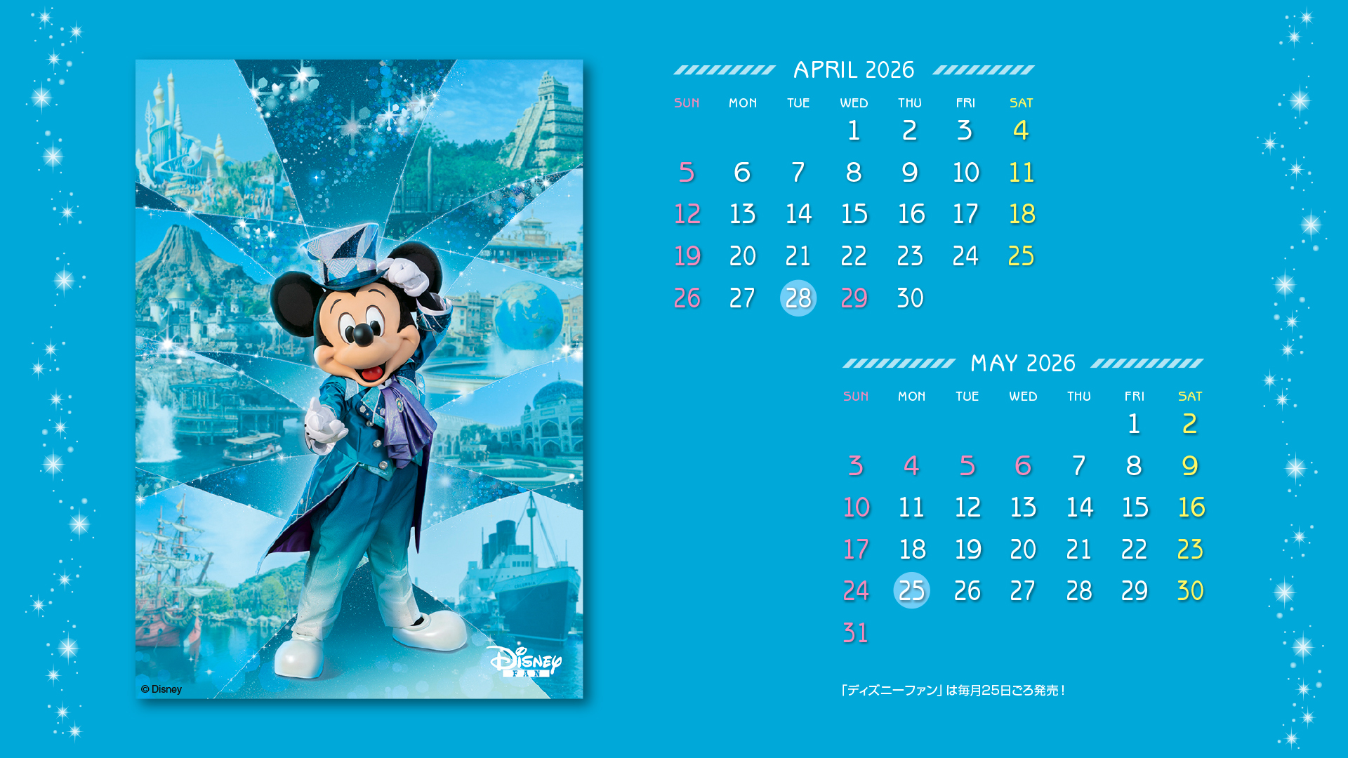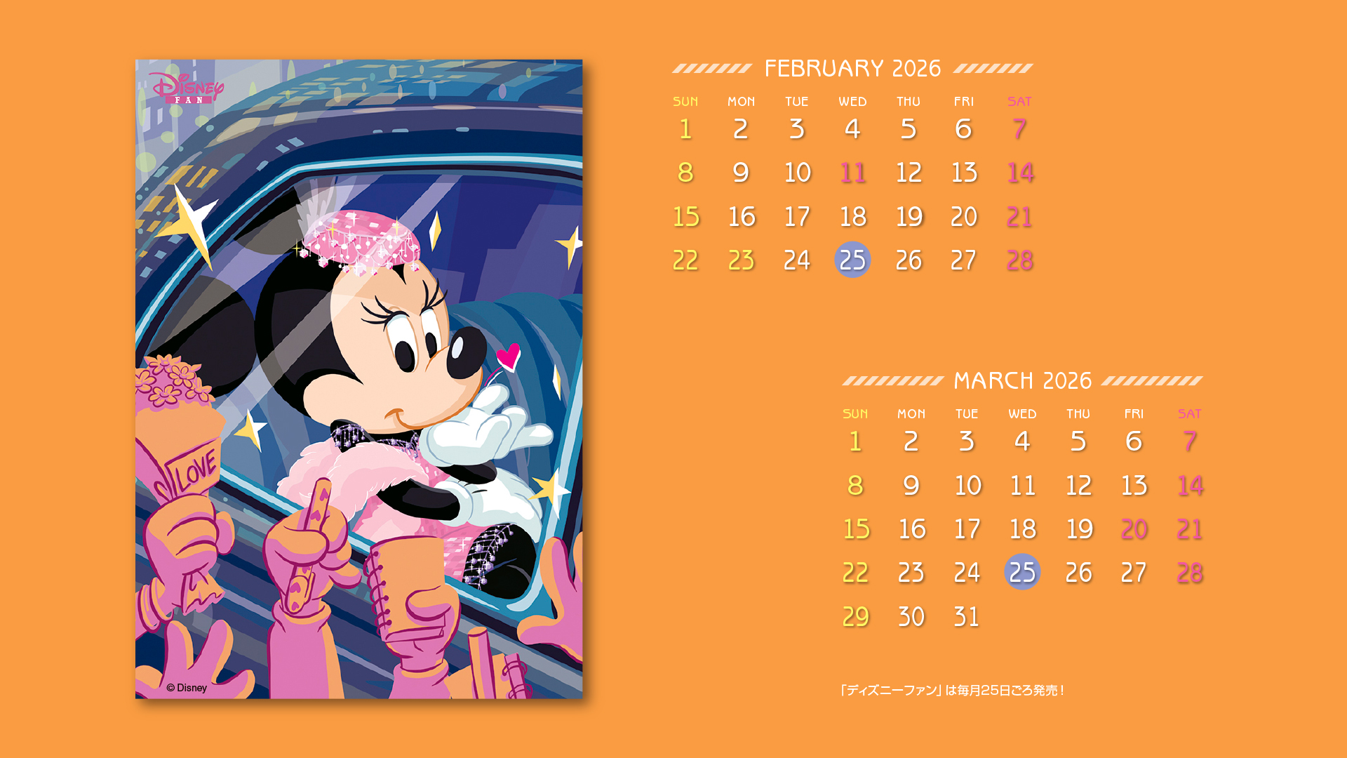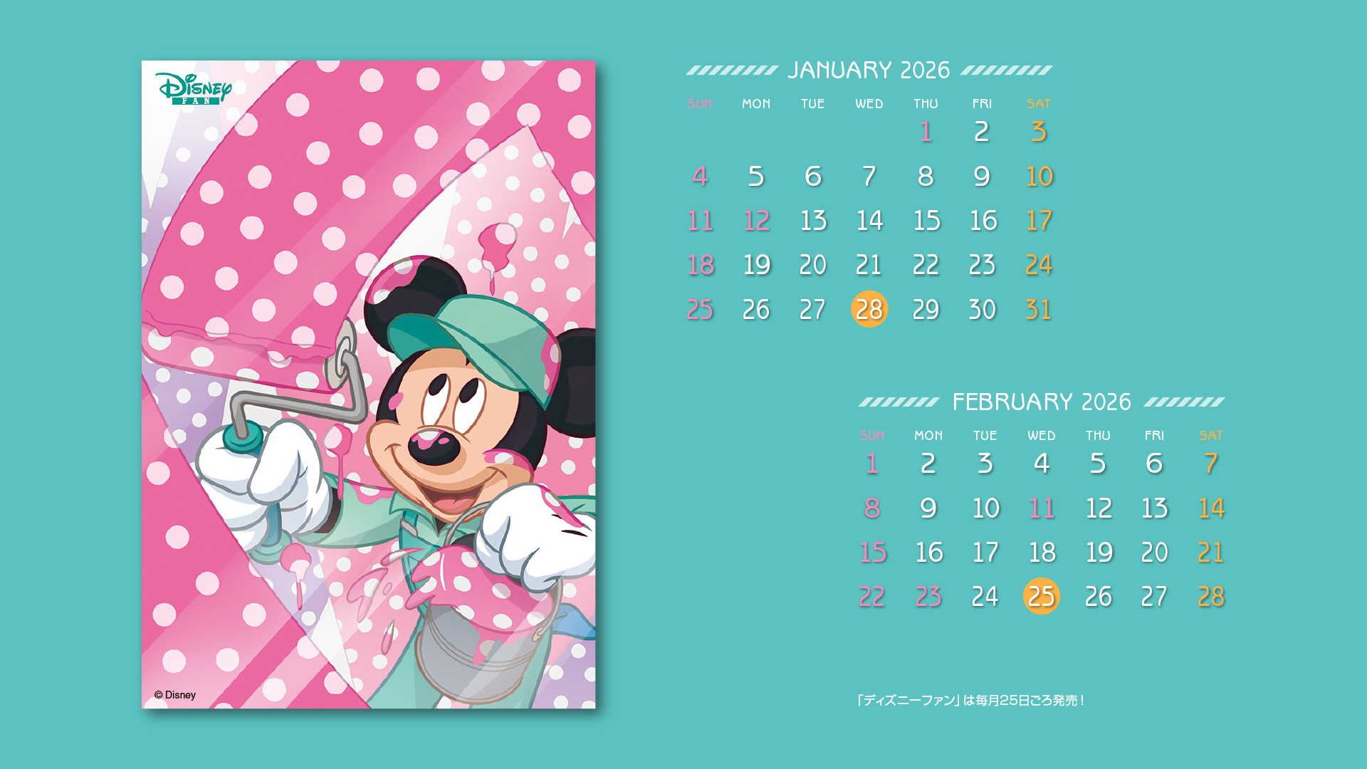 ディズニーファン公式サイトでは、毎月楽しい壁紙を無料で全員にプレゼント!毎月チェックして壁紙をゲットしてください。