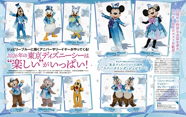 2月号は、2026年への期待が高まるディズニー情報が満載! 東京ディズニーリゾートの年間スケジュールをはじめ、1月14日(水)から始まる東京ディズニーランド「ディズニー・パルパルーザ」第5弾「ミニーのファンダーランド」の見どころや東京ディズニーシー25周年のお楽しみなどをご紹介。